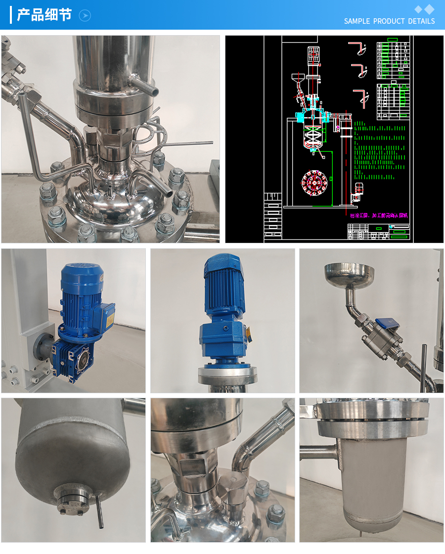 其他附件 如果用戶在釜蓋、釜體開口、內(nèi)部結(jié)構(gòu)、壓力高低、攪拌槳葉、及增加其他輔助裝置(如冷凝回流裝置、冷凝器、恒壓加料罐、接收裝置)等有特殊要求,可完全按用戶的要求加工制造