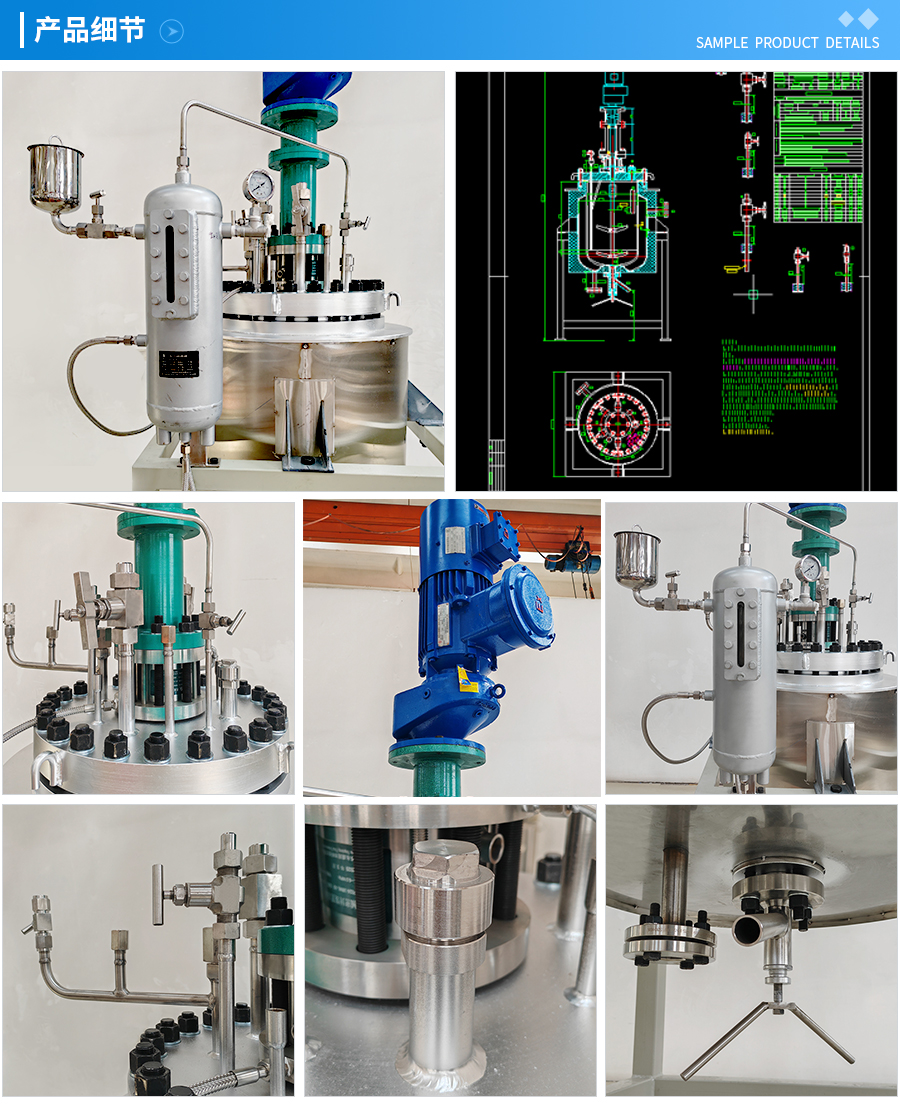 其他附件 如果用戶在釜蓋、釜體開口、內(nèi)部結(jié)構(gòu)、壓力高低、攪拌槳葉、及增加其他輔助裝置(如冷凝回流裝置、冷凝器、恒壓加料罐、接收裝置)等有特殊要求,可完全按用戶的要求加工制造