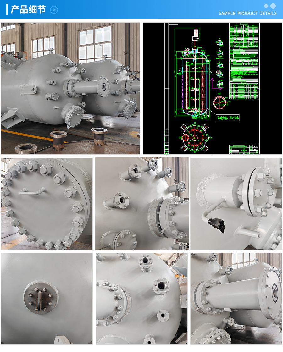 其他附件 如果用戶在釜蓋、釜體開(kāi)口、內(nèi)部結(jié)構(gòu)、壓力高低、攪拌槳葉、及增加其他輔助裝置(如冷凝回流裝置、冷凝器、恒壓加料罐、接收裝置)等有特殊要求,可完全按用戶的要求加工制造。