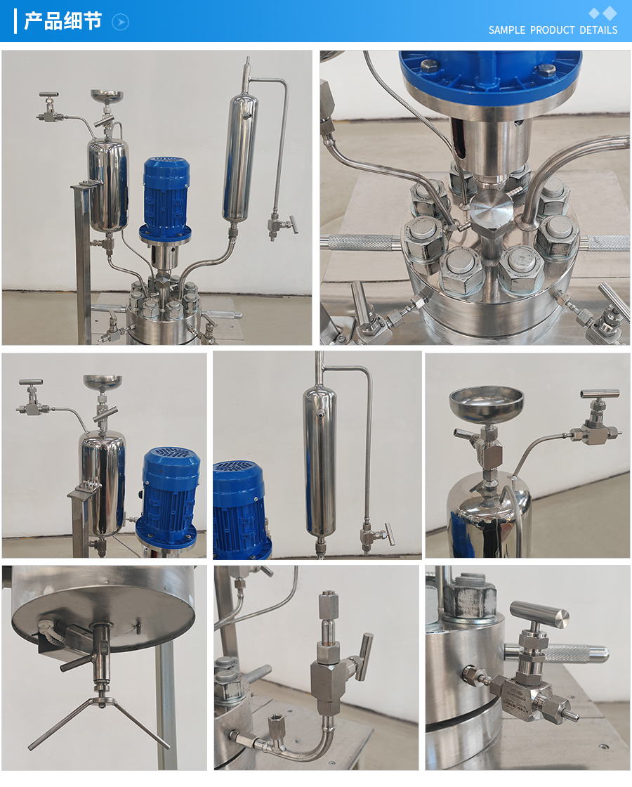 其他附件 如果用戶在釜蓋、釜體開(kāi)口、內(nèi)部結(jié)構(gòu)、壓力高低、攪拌槳葉、及增加其他輔助裝置(如冷凝回流裝置、冷凝器、恒壓加料罐、接收裝置)等有特殊要求,可完全按用戶的要求加工制造