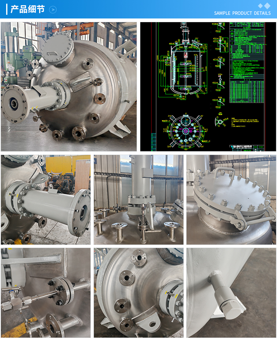 主要材料 釜體材料主要采用不銹鋼與碳鋼復(fù)合材質(zhì) S30408(304)+Q345R、S31603(316L) +Q345R、S32168(321)+Q345R, 也可是純不銹鋼材質(zhì),并可根據(jù)不同介質(zhì)要求制作鈦材、鎳材、鋯材、哈氏合金、蒙耐爾合金等復(fù)合材質(zhì)反應(yīng)釜,也可根據(jù)客戶要求主要材料噴涂四氟PTFE/PPL。